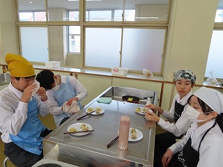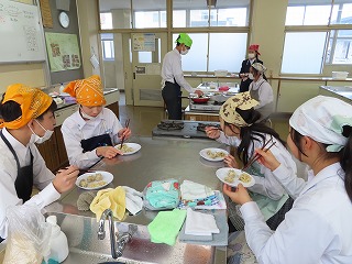 (2年2組)家庭科「調理実習」。班で協力して美味しい焼...