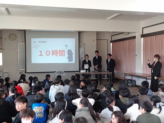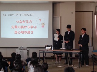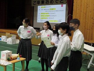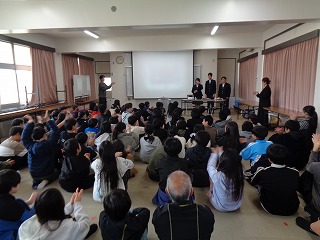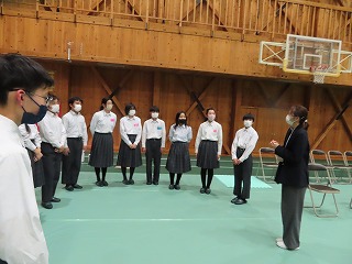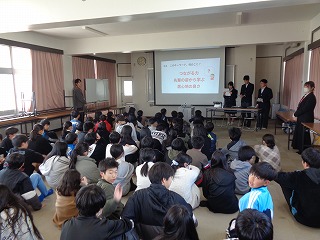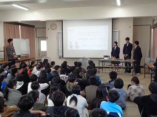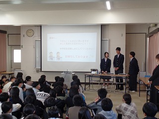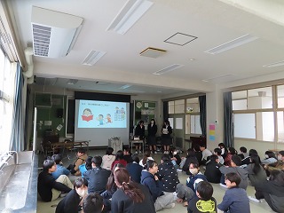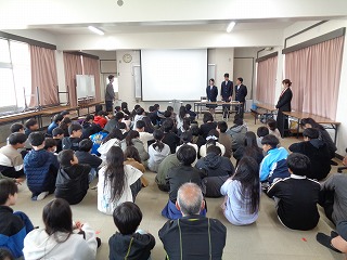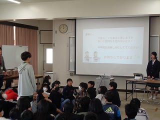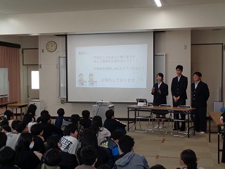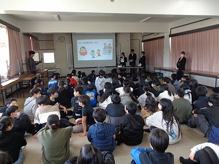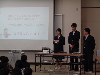 ※「中学校3年生の代表生徒」数名が、県小学校、三重北小学校・三重小学校の3つの小学校に出向き、小学校6年生のみなさんに「中学校ガイダンス(中学校紹介)』を行います。