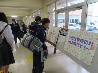 先週木曜・金曜日に取り組んだ「学年末テストに向けた質問日(補充学習)」どの頑張っている姿同様に、1年生も2年生もみんなで頑張る雰囲気を大切にしながら、3日間のテスト期間を乗り切ってくれました。