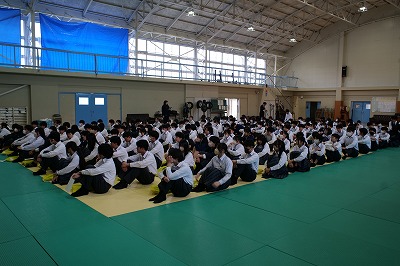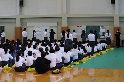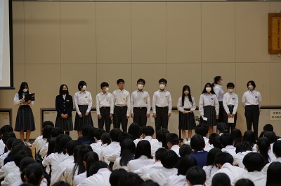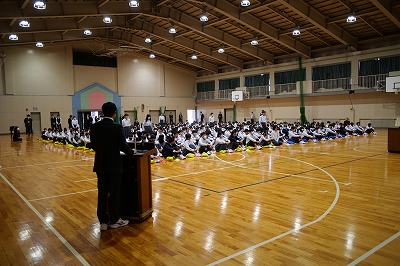 本日の還流報告会は、大池中学校生徒会が大切にしている取り組みです。今年度は生徒会役員と一緒になって有志ボランティアメンバーも全校生徒のみなさんにむけて、交流会の報告を分かりやすく可視化した資料をもとに発表をしてくれました。きっと今日の報告会を受けて、「来年度は自分も参加してみたい!」と思ってくれる仲間も絶対にいたと思います。それだけ、心のこもった報告会であったと思います。