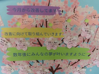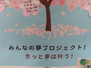 【次の写真は、卒業した3年生と2年生の生徒会本部役員が9月に参加した、北勢きらら学園との交流会で作成した「交流会記念横断幕」】
