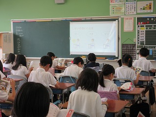 3年生の教室では、子どもたちがとてもいい姿勢で本を読んでいました。姿勢が悪いと体調にも影響があると言われています。「グー ペタ ピン」を意識した姿勢で学習すると集中力も高まりそうですね。
