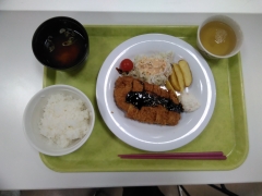 本日の夕食です。味噌カツ定食です。