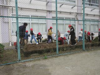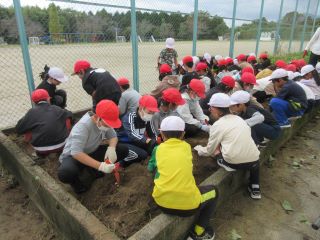 今日は、心を込めて育ててきたさつまいを掘る日です。1限目に2・5年、3・4年、5限目に1・6年がいも堀りをします。