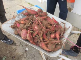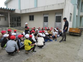 2・5年生では、事前に5年生がさつまいものつる切りをしていました。昨年度までは、先生方で準備をしていましたが、今年度からは、低学年が堀りやすいように高学年が頑張ってつる切りをし、掘りやすいきれいな畑にしてくれていました。