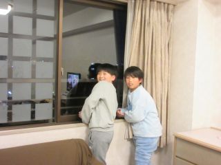 夕食後は、各部屋でしおりのまとめやふりかえりをしたり、入浴したりして過ごしています。部屋での遊びやおしゃべりもとても楽しそうです。夜景を見ている子ども達も・・・