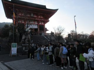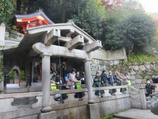 清水寺では、朝早くに着いたので、人混みもそれほどなく、音羽の滝の3つの水も飲むことができました。班別のお買い物も楽しんでいました。