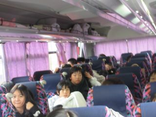 甲南PAでトイレ休憩です。バスではDVDを見て過ごしました。17時ごろ、学校に到着の予定です。