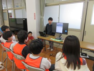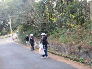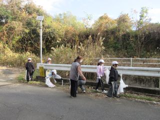 堂ケ山方面、和無田方面に分かれて、道端のゴミを拾いました。「あそこにゴミがあるんだけど・・・」と遠くに見えるゴミも見つけて拾おうとしている子もいました。「アルミ缶が落ちてる。」「タバコのゴミがいっぱい。」など言いながら、意欲的にゴミ拾い活動に取り組んでいました。