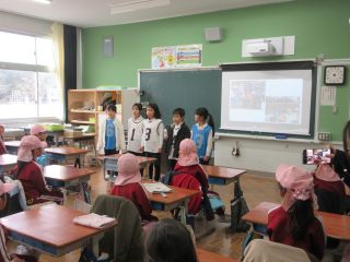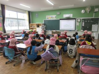 今日の1限目に、今年度最後の町別児童会が行われました。各町に分かれて、登下校の反省や危険個所の確認などしました。子ども達は、「あいさつができた」「お互い声かけすることができた」など良かったことなどを発表していました。その後、新年度の登校班編成もあり、新1年生へ手紙を書いていました。