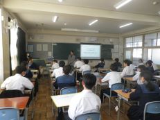 本日は、3年2組、2年3組、1年1組の5限目で桜中学校区の「学びの一体化研修会」の授業公開を行い、桜小学校、桜台小学校、桜こども園の先生たちに授業をみてもらいました。3学年とも人権の授業を行い、その後、桜中学校区としての「人権の学び」について話し合いました。