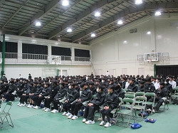 続いて修了式です。まずこの一年間の生徒のみなさんの頑張りに心から拍手を送りたいと伝え、2つの言葉についてお話しました。