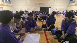 体育館ではソフトバレーボール、武道場ではクイズと百⼈⼀⾸を⾏い、クラスの仲間と楽しい時間を過ごしました。リーダーの人たちが企画・運営をしてくれました。ありがとうございました。2年生最後のイベントは彼らのおかげもあり大成功でした。