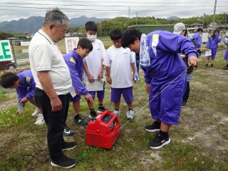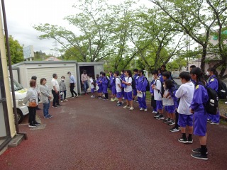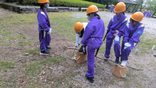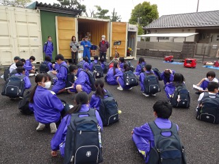 午前中は「桜ウオッチング」です。地域の皆様のご協力を得て、防災倉庫を見せていただきながら、いざという時の体験をさせていただきました。また、避難場所を見て回りました。