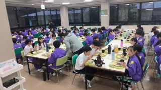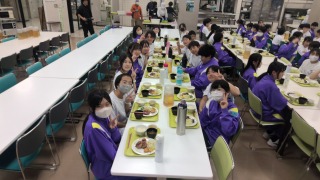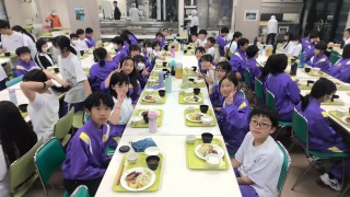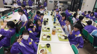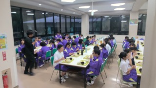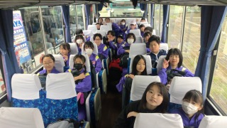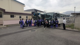 学校に戻って昼食を食べたら、いよいよ少年自然の家へバスで移動です。