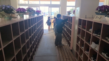 本来、保護者の皆様が座る場所にかわいいお客さんです。