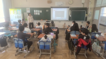 5年生は理科。花のつくりの学習です。菜の花などいろいろな花の花びらやがく、おしべなどを観察しワークシートに記録しました。