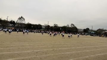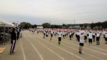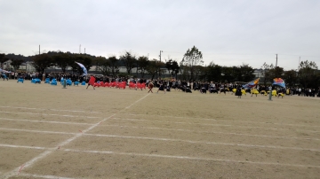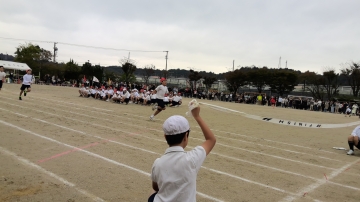 トップバッターは5.6年生のワープリレー。抜きつ抜かれつ、いい勝負で盛り上がりました。