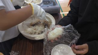 今回は、お米を炊きました。班の代表が休み時間にお米を研ぐなど、協力して、実習をしました。