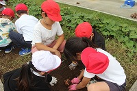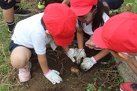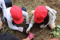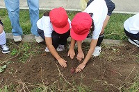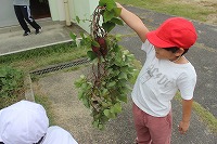 1年生の畑で育てていたサツマイモをみんなで掘り出しました。