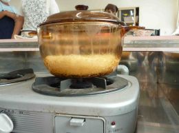 耐熱ガラスの鍋で、炊いている間、お米がどのように炊けていくのかも見るなど、いろいろと発見がありました。