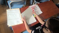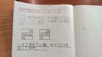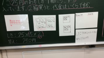 3年生は算数で2桁や3桁×1桁の筆算の学習をしています。計算の順序がたくさんあって大変ですが、がんばっています。今日は3つの数のかけ算について学習しました。これまでに学習した計算のきまりなども使いながら、早く正確に計算できる方法を考えました。