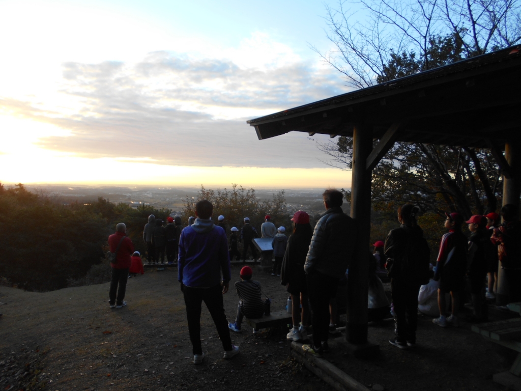 しんと冷えた静かな朝がきました。自然の家の窓から見える東の空は、オレンジ色に輝いていました。