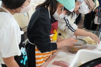 班のメンバーで協力して、やさいのベーコン巻きをつくりました。