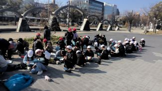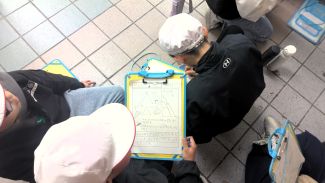 運動場にいた子どもたちは、できるだけ運動場の真ん中に集まって座ったり、教室や廊下にいる子たちは、窓際から離れて頭を守るなどの行動ができました。