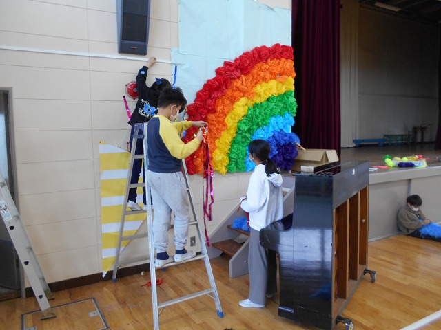 今日は、5年生が「6年生を送る会」の発表の練習と進行の練習をしていました。また、飾りつけなどの準備をしてくれました。いよいよ、来年度は最高学年です。ますますの活躍が楽しみです。