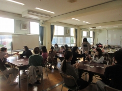 学習発表会後、PTA主催で国際ふれあい交流会を行いました。子どもたちだけでなく、保護者の方どうしも、国籍に関係なく交流を深めることを目的として開催しています。お菓子などを持ち寄り、ゲームをしながら楽しく交流を深めることができました。