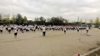 今日1限目に、運動会全体練習を行いました。開閉会式の並び方や入場行進、準備体操など、一通り行いました。子どもたちは、姿勢よく立ったり、前で話している人の話をしっかり聞いたりするなど、一生懸命真剣に取り組む姿が見られました。準備体操や選手宣誓などを担当した児童も、がんばっていました。運動会当日が楽しみです。