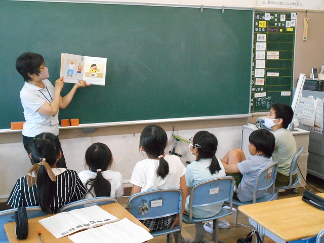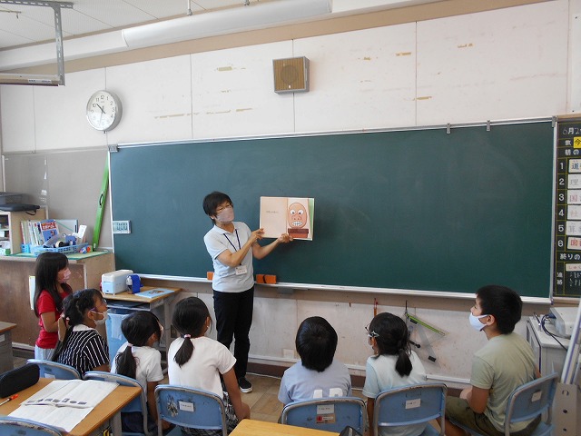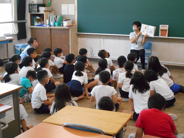 外は毎日暑いですが、校舎内には、涼しい場所がたくさんあります。今日は、休み時間や昼休みに、3年生のクラスで、図書館司書さんに「うえきばちです」「ぱんつくったよ」の読み聞かせをしていただきました。子どもたちは、楽しい読み聞かせに夢中になっていました。