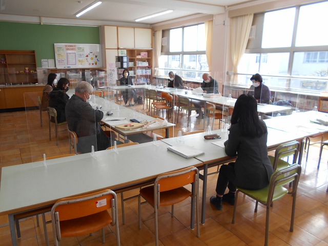 今日は、新型コロナウイルス感染症対策を講じながら、本年度最後の学校運営協議会を開催し、PTA会長をはじめとして、地域の皆様にご出席いただき、本校の本年度の教育活動について話し合っていただきました。