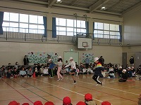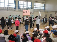 ジャンボリーミッキーの曲に合わせて、とても軽快に楽しく踊りました。途中、6年生も踊りに飛入り参加をしました。「6年生に聞きましたクイズ」では、全員がクイズに参加しとても盛り上がりました。