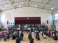 最後に6年生の発表です。「旅立ちの日に」を合唱しました。高音と低音に分かれて、お互いのパートの歌声を聞きながらきれいなハーモニーを奏でることができました。1年生から5年生の子どもたちも6年生の歌声を真剣に聞いていました。