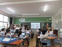2年生の国語の時間では、カタカナで書く言葉の学習をしています。授業の始めに、どのような言葉がカタカナで書くのかを確認しました。その後、身の回りから、カタカナで書く言葉探しをしました。タブレットを使って発表ノートの付箋に書いていきました。ブラジル、スペインなど、いろいろな国の名前も出てきました。カタカナ表記の名前の子どもたちもたくさんいるので友達の名前を書いている子もいました。自分が見つけたカタカナ言葉を発表した後、その言葉を使った文章を作りました。