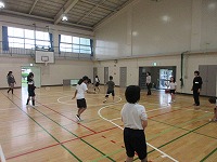バトミントンクラブ:ペアで打ち合いをしていました。