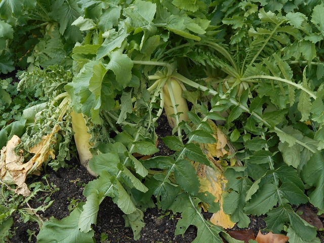 10月に2年生が種を植えた大根が、約2か月でこんなに大きくなりました。
