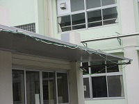 6月に入り、暑い日が続いています。先日の学校だより等でもお知らせしたとおり、学校では、熱中症にならないためにいろいろな対策をしながら教育活動を進めています。WBGT値を体育の時間前に加えて1日3回、定期的に計測するようにしています。WBGT値が28を超えると、昇降口に注意喚起の表示をし、保健委員が放送で呼びかけをしています。今日は、昇降口の庇に、ミストシャワーを設置しました。ご家庭でのお子様の健康管理にご協力ください。