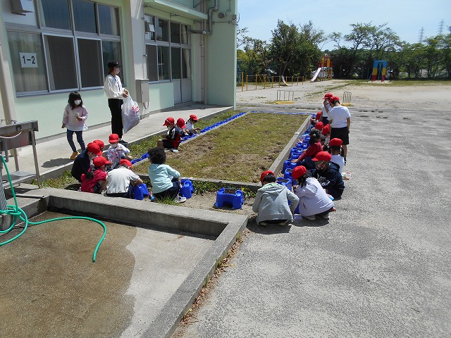 外では、いい天気の中、1年生の子どもたちが、アサガオの種を植えていました。心を込めて、とても丁寧に植えていました。どんどん大きくなっていくアサガオの様子を観察して、いろいろな発見をしてほしいです。