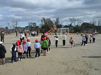 1月末からスタートした代表委員会企画の「あそび集会」も今日で最後でした。今日は1年生と代表委員の人と一緒に「ながなわ」と「ころがしドッジ」をしました。ながなわは、6年生の代表委員の人が、1年生がとびやすいようにまわしたり、ころがしドッジでは、6年生がボールをころがし1年生が当たらないようにジャンプしたり、よけたりしていました。1年生の子どもたちと6年生と一緒に遊ぶことができてとても楽しそうでした。