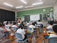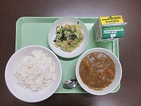 今日から給食がスタートしました。今日のメニューは、ポークカレー・米飯・海藻サラダ・牛乳です。1年生の教室をのぞくと、静かに給食を食べていました。「やっと給食を食べられた」「給食おいしい」と嬉しそうに話をしてくれました。今月の給食の献立のテーマは「元気いっぱいメニュー」です。夏の暑さで疲れた体を元気にするはたらきのある食べ物をたくさん使って献立が考えられています。しっかり食べて元気に過ごしましょう。