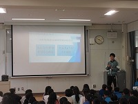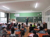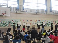 5年生と6年生は、体育館に集まり、6年生が委員会活動について、5年生に紹介をしました。活動時間や活動内容などを画用紙に書いて、それを見せながら説明をしました。5年生は、6年生の説明を真剣に聞いてメモをとることができました。
