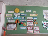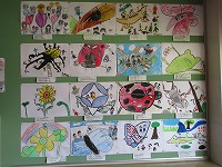 6月に入り、校内掲示物も模様替えです。ホールの大きな掲示板には3年生の図工の作品を展示しています。自分の好きな虫や花を描き、友達と楽しく遊んでいる様子を表しました。どの子の作品も子どもたちの思いがいっぱい詰まって素敵な作品です。