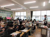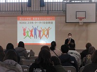 2時間目は、PTA主催で保護者向け「スマホ・ケータイ安全教室」を開催しました。講師の方からは、スマホでメッセージをやりとりする際に気を付けること、ゲームの課金の怖さなどについて話をしていただきました。子どもたちが安心してスマホやケータイを使うためには、家族全員でルールををきめる、書いて残しておく、フィルタリングを設定することが大切であることを学びました。ご家庭でもお子さんと一緒にスマホやケータイの使い方について、ぜひ話し合ってみてください。