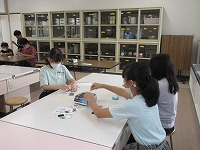 5年生の家庭科の授業では、玉止め・玉結びの練習をしていました。家庭科は5年生からスタートする教科です。家庭科では、調理だけでなく、衣服に関すること、消費生活・環境に関すること、家庭生活に関することなどを勉強します。布を用いた製作の第1歩が、玉止め・玉結びの練習です。なかなかこれは苦戦します。できたと思ったら玉ができていなかったり、糸の端よりずいぶん上の方に玉ができてしまったり・・・子どもたちは、休み時間も忘れるぐらい熱心に練習をしていました。