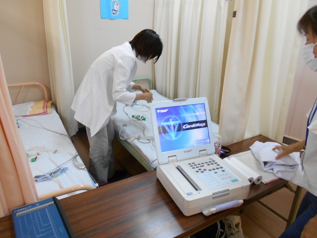 今日は、1年生と4年生が心電図検査を行いました。