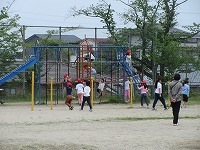 1年生が入学して3週間が経ちました。今日は、2年生の子どもたちが、1年生に学校案内をしていました。2年生も一つ大きくなり、1年生のことを気にしながら案内することができました。最後は、運動場で一緒に楽しく遊びました。
