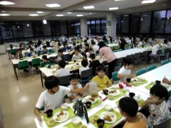 先程、食堂で夕食を食べました。夕食のメニューは、唐揚げでした。夕食のあとは、キャンプファイヤーです。